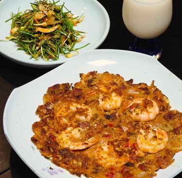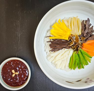 Experience making Bibimbap & Korean Pancakes, served with rice, soybean paste soup, and seasonal side dishes.